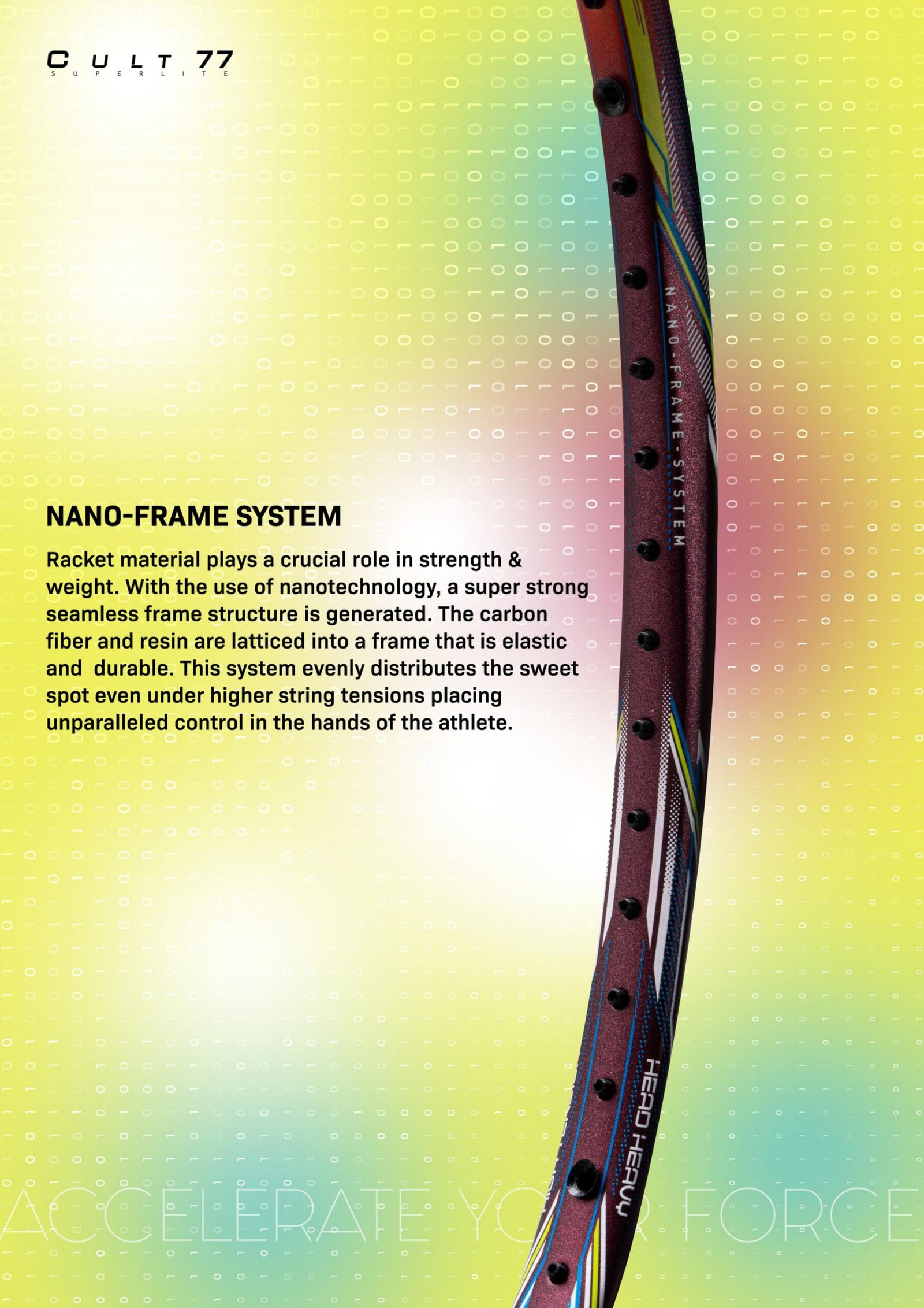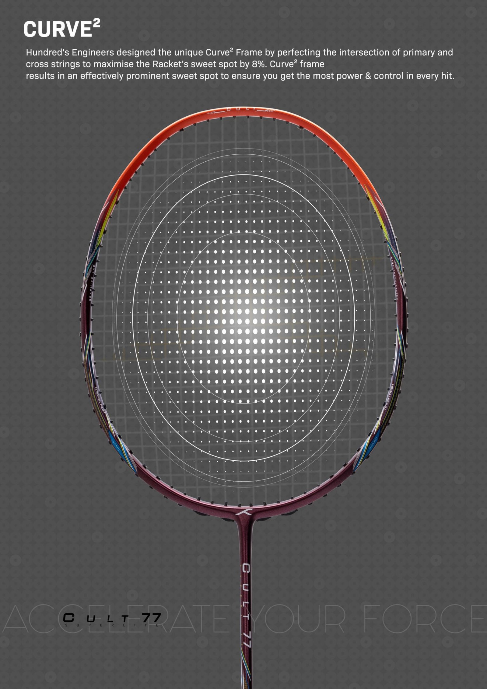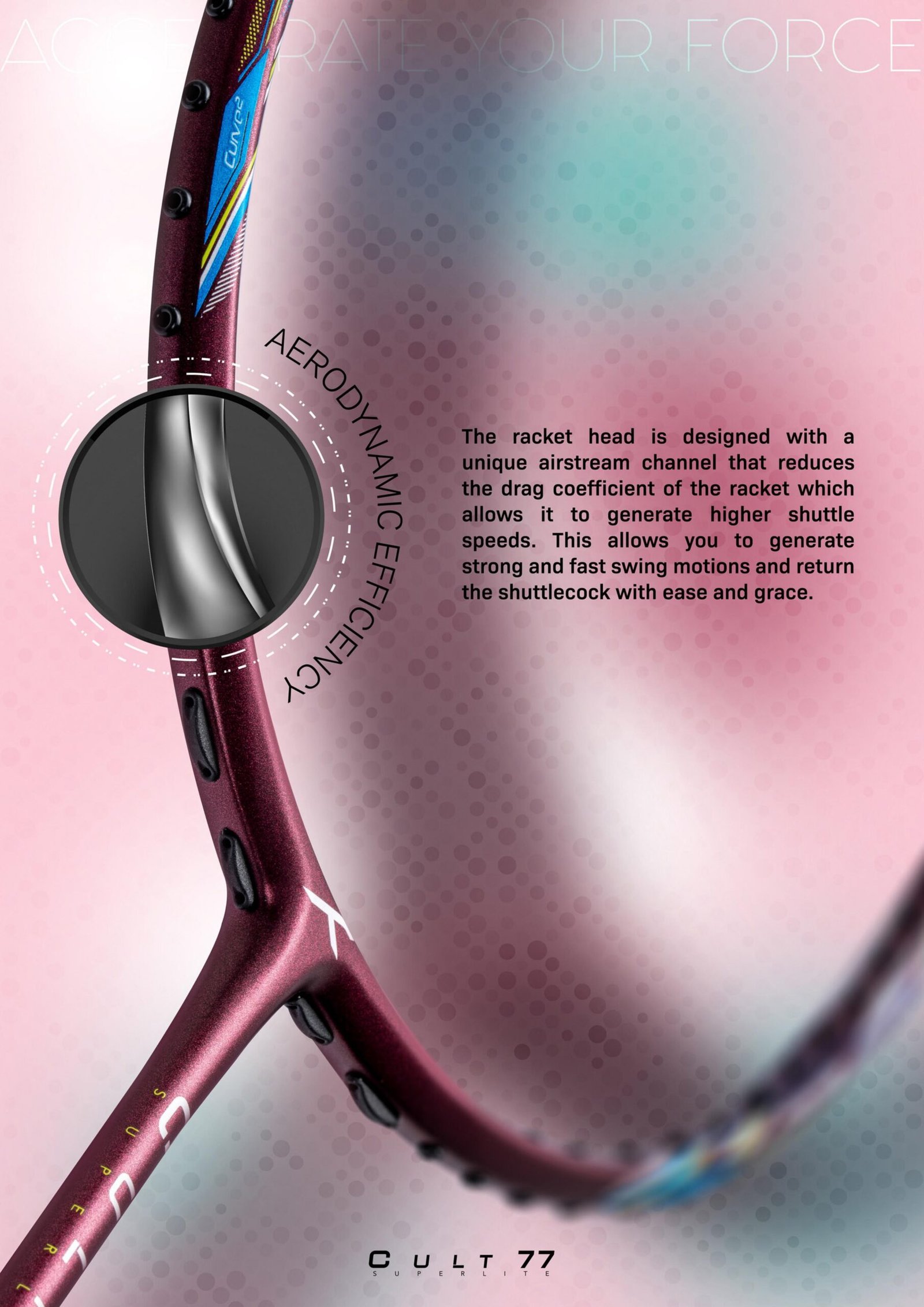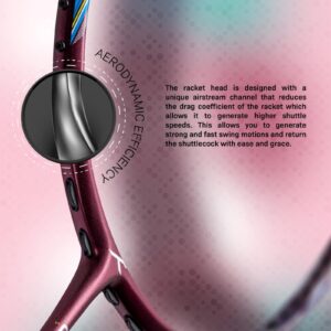 The Superlight 5U racket comes with an aerodynamically efficient racket head that reduces air drag to ensure faster striking speed.