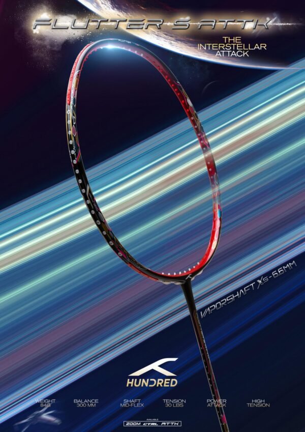 Be the first to review “HUNDRED Flutter S ATTK Carbon Fibre Unstrung Badminton Racket”