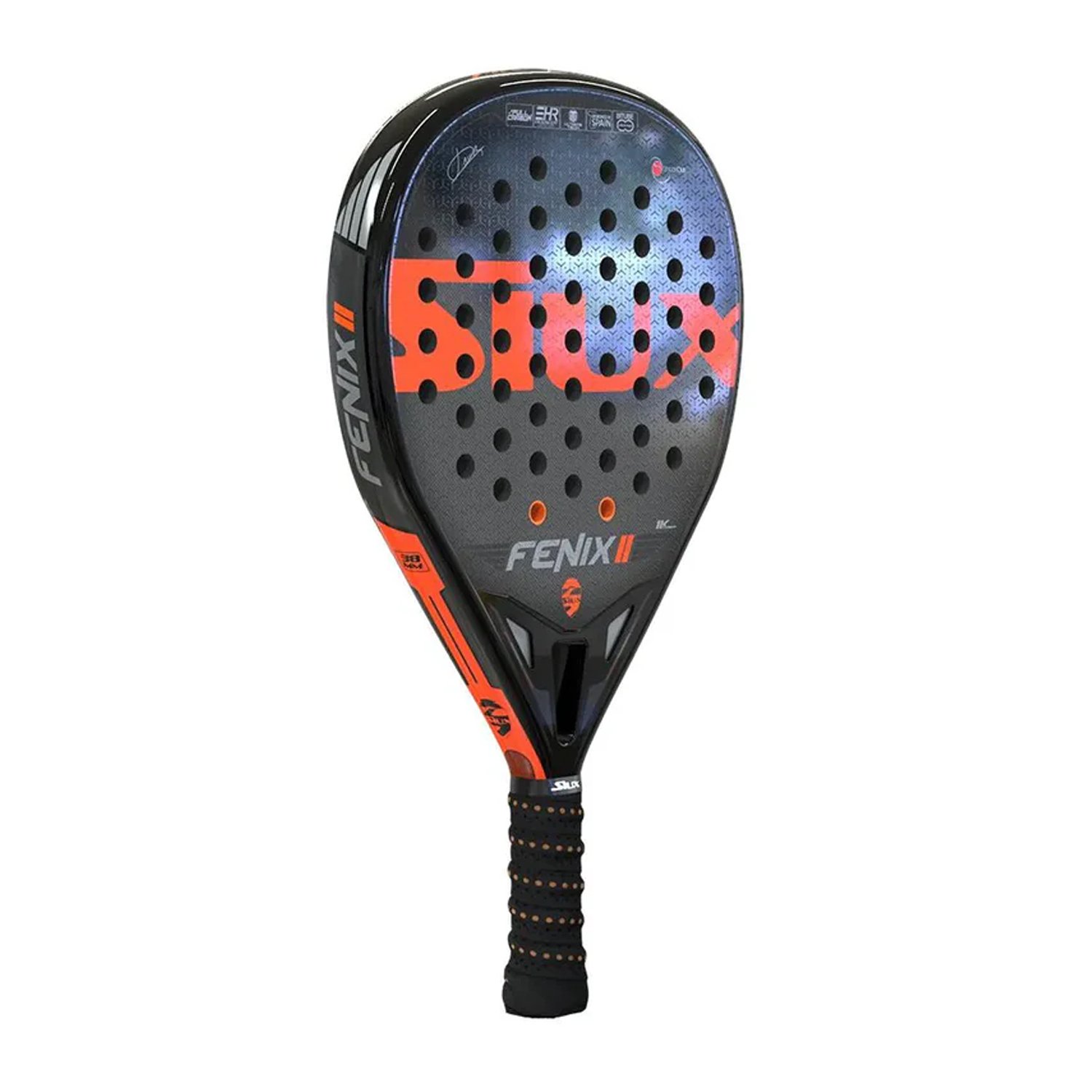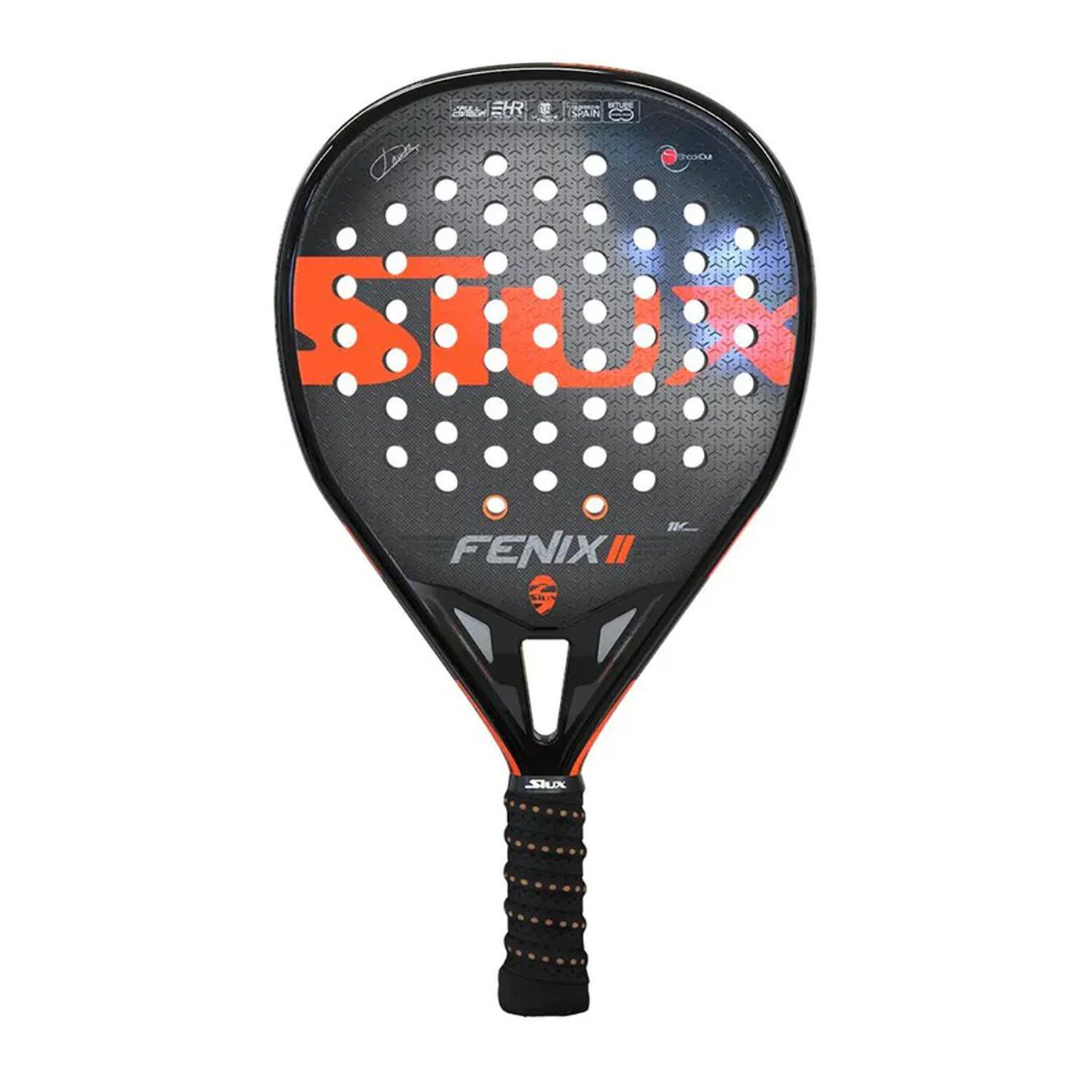 The Siux Fenix II 1K Javi Ruiz (Shock Out) Padel Racquet is a high-performance racquet designed for advanced players who want a powerful yet controlled game. It is endorsed by professional player Javi Ruiz and it is made with premium materials and innovative technologies.